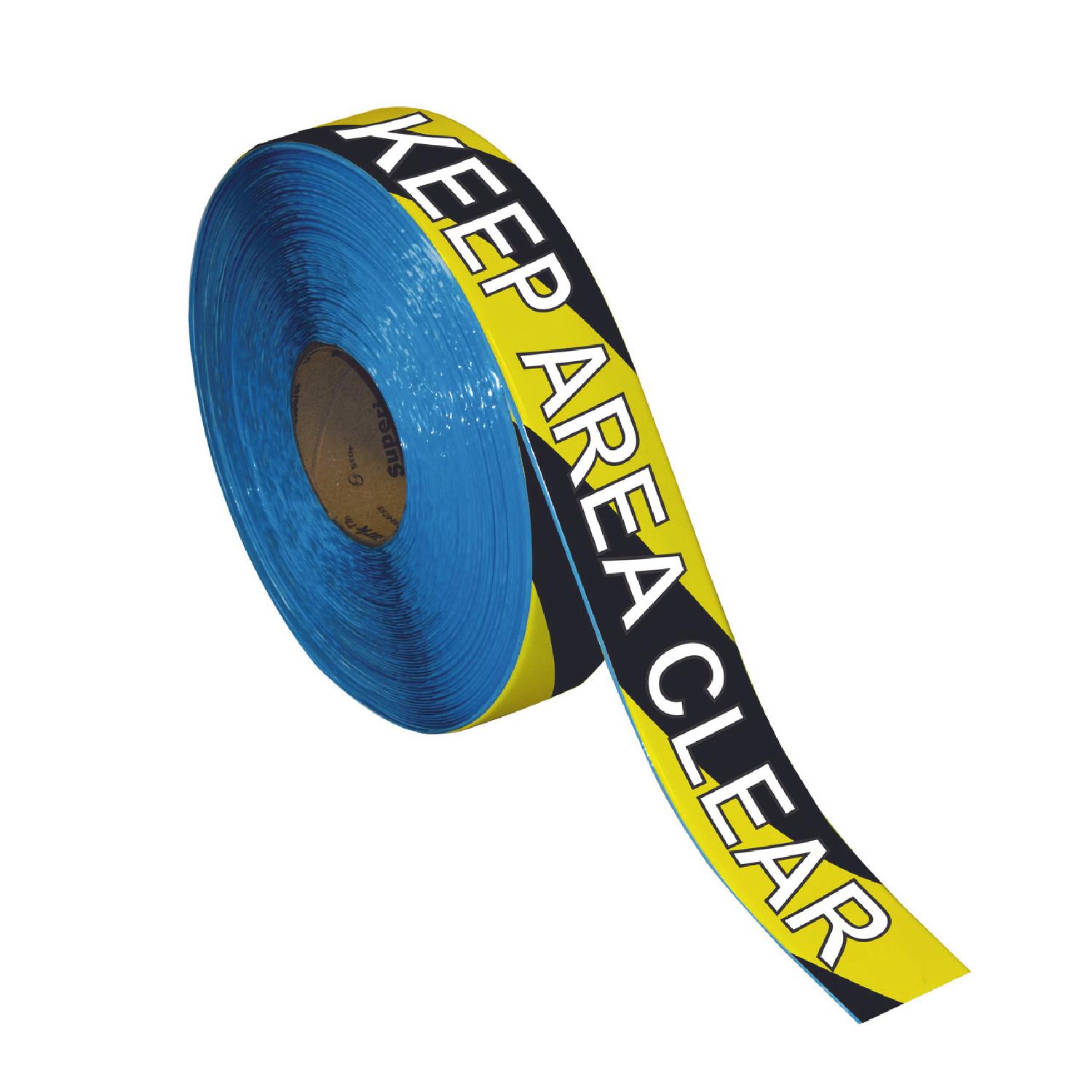 Superior Mark™ Floor Message Tape (Roll Of 100 Ft.): Keep Area Clear Black And Yellow Stripe Floor Marking Tape