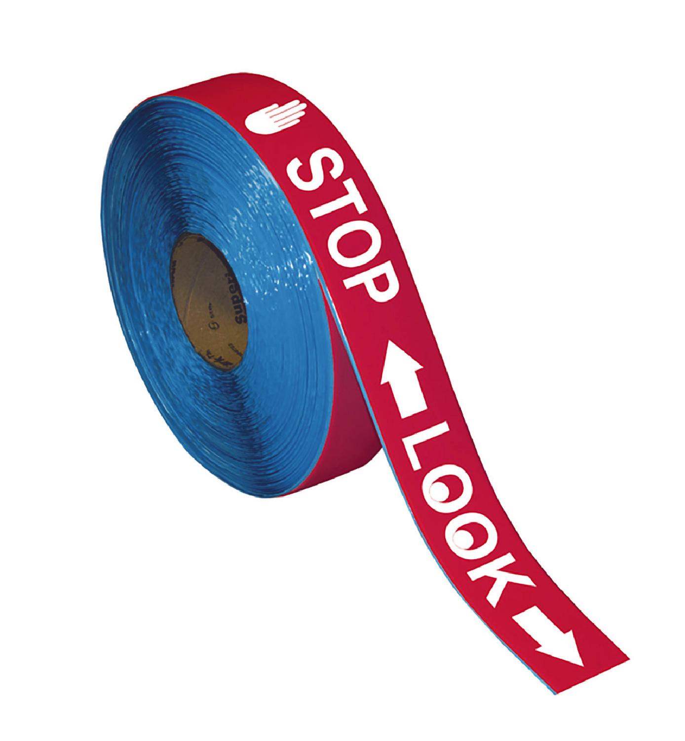 Superior Mark™ Floor Message Tape (Roll Of 100 Ft.): Stop Look Floor Marking Tape